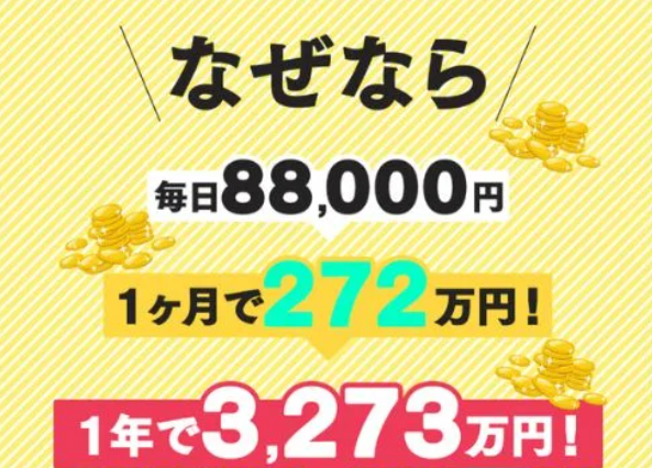 「スマホ1つで毎日8万8千円の収入」と行けば、私でもクラっと冷静さを失う言葉です。